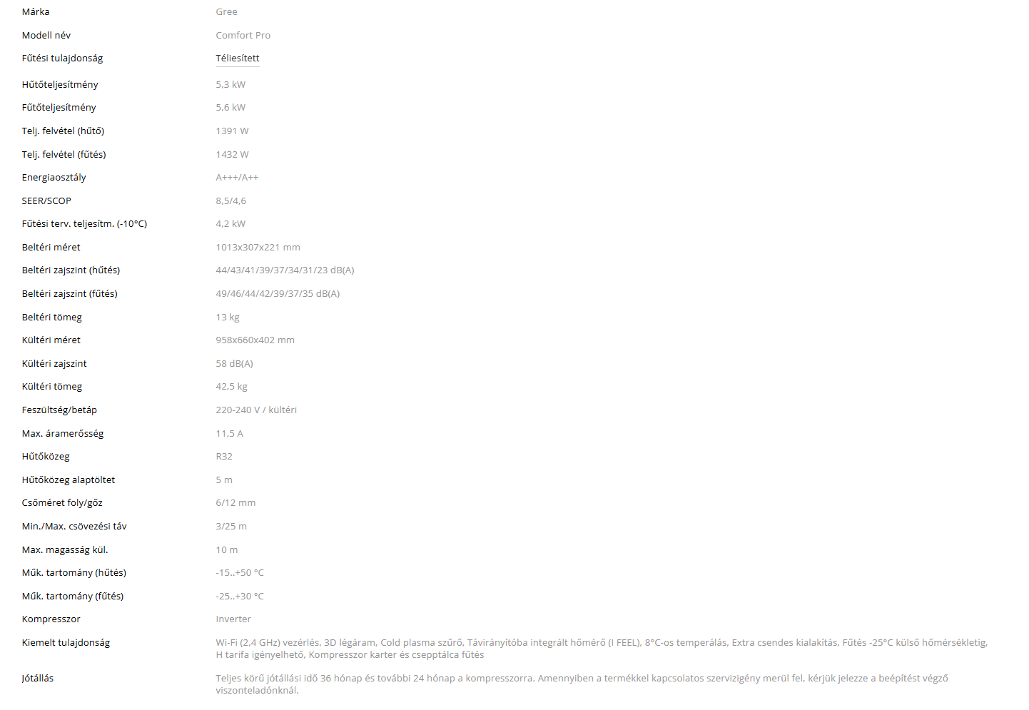 A Gree GWH18ACDXF-K6DNA1D Comfort Pro Inverteres Split klíma fontos tulajdonságai: